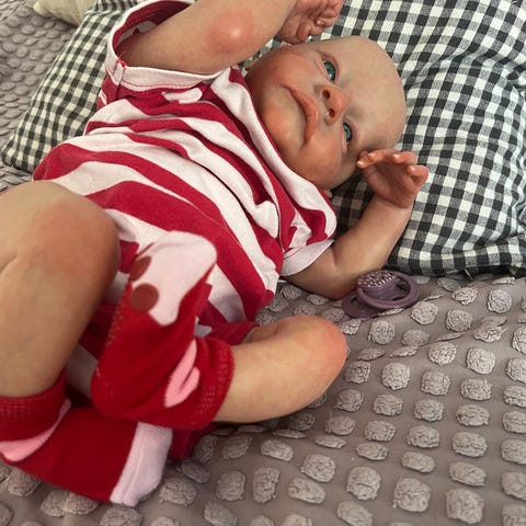 Reborn-vauvanukke realistinen nukke. Nukke on luonnollisen vastasyntyneen kokoinen ja yksityiskohtaisesti maalattu, kasvoissa, käsissä ja jaloissa näkyy ihon sävyjä ja pieniä yksityiskohtia. Sopii keräilyyn tai rekvisiittakäyttöön.