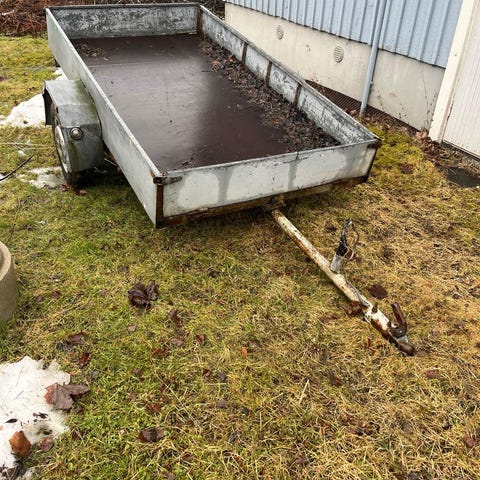 Peräkärry avolavakärry harmaa metallia. Yksakselinen, jarruton malli, jossa avoin lavarakenne ja metalliset laidat. Sopii esimerkiksi maa-ainesten, puutarhatarvikkeiden ja muun kuorman kuljettamiseen henkilöauton perässä. Kärryssä on valot ja heijastimet takana sekä vetoaisa vetokoukkuun kiinnitystä varten.