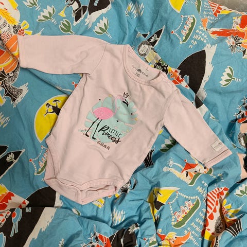 Myydään Bonpoint body (6 months). Tullut meille käytettynä, mutta ei ehtinyt käyttöön. Pienempää mitoitusta kuin kokolapun mukaan. Ottaisin käyttöön jo aikaisemmassa koossa. Hyvä käytetty kunto. Pesun myötä tullutta nukkaa. Kaula-aukon luona kankaassa on aavistus kellertävää (ks. kuva). En ole yrittänyt valkaisevaa pesua tai tahranpoistoa, koska ei ehtinyt meillä käyttöön. Nepparit toimivat ja niissä ei ole kulumaa. Tikkaukset ovat täysin ehjät. Meillä on käytössä hajusteeton pesuaine. Eläimetön ja tupakoimaton talous. Kulkeutuu Rovaniemelle viikolla 14. Nouto Paavalniemestä tai kulkeutuu keskustaan. Mobilepay.