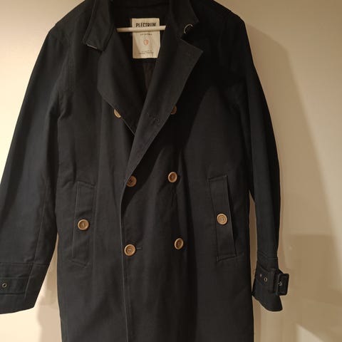 Muutaman kerran pidetty, erittäin hyvä kunto. Ompeleet, vuori, napit kaikki erinomaisessa kunnossa. Pinnassa on joitakin perus käytön/säilytyksen jälkiä, joita tämäntyyppiseen materiaaliin ehkä kuuluukin, ulkomateriaali on jämäkkä ja uskoisin, että siten jonkin verran kosteutta hylkivä. Tuotelapussa ulkomateriaaliksi annettu puuvilla, vuorikangas polyester ja viskoosi (kts. kuva).