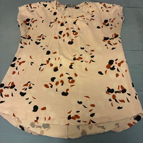 Kauniisti laskeutuva Noshin paita. Lapussa lukee XXL mutta mielestäni pienempi. Leveys kainaloista 57 cm. Puolipituiset hihat.