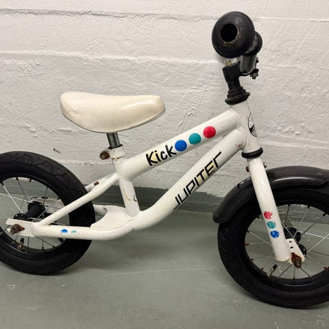 Muumi Wiin lasten potkupyörä, jossa 12" renkaat. Rungon ja haarukan väri on valkoinen, ja vanteet sekä satulan takaosa ovat vaaleanpunaiset. Pyörässä on mustat käsigripit, etu- ja takalokasuojat sekä säädettävä satula. Sopii pienille lapsille tasapainon ja pyöräilytaitojen harjoitteluun.
