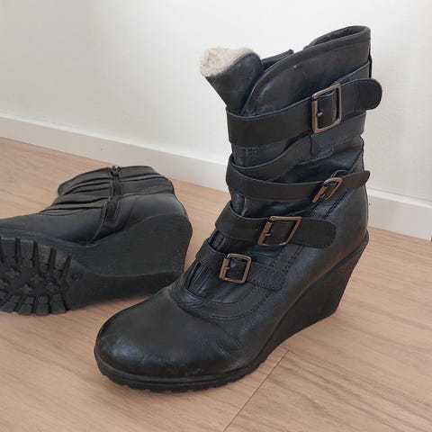 Myydään Suave merkkiset mustat Sofia nilkkurit. Hyvässä kunnossa, käytetty vähän. Kengissä on lämmittävä vuori ja ne ovat nahkaa. Pohja on kumia. Maksoi uutena 99e.