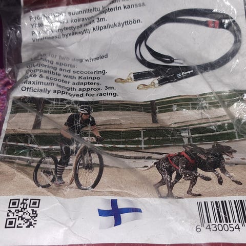 Ollut käytettäessä aina edessä, vetoasennossa yhdellä keskikokoisella koiralla. Saa käännettyä myös sivulle.