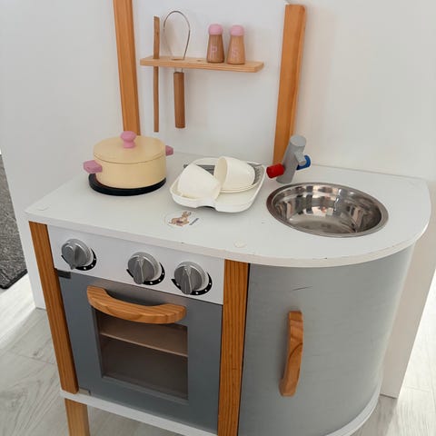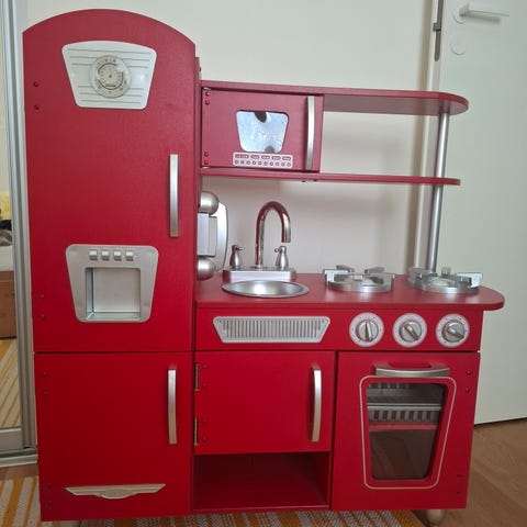 Tilattu leikkikeittiö käytettynä. Yksi väli/ seinälevy mennyt rikki tod.näk. Kuljetuksessa (näkyy kuvassa), joku saattaisi osata tuunata tämän lapselleen.