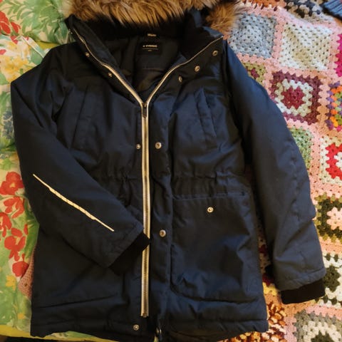 Hyväkuntoinen yhden talven pidetty pitkä lasten toppatakki myynnissä.