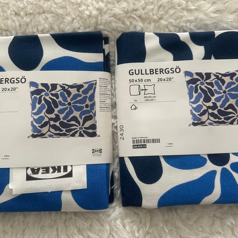 Tyylikäs kangas. Kuin Johanna Gullichenin mutta ei ole. En muista minkä firman. Kuvassa liian pieni sisätyyny. Takana yksivärinen puuvillakangas. Vetoketju. Sopii 50cm x 50cm tyynylle. Kulkeutuu postissa pikkupaketissa 5,9e