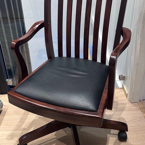 BOK-81 | Puinen pyörivä konttorituoli käsinojilla, keinumekanismilla ja korkeuden säädöllä. Kuin uusi! Kauppahinta 1107,00€ viimeinen ostopäivä ja nouto 26.3