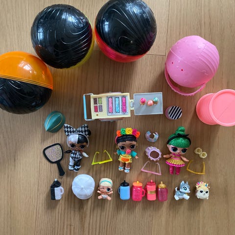 L.O.L. Surprise! nukke- ja leikkisetti, jossa useita pieniä keräilynukkeja ja vauvanukkeja. Mukana erilaisia värikkäitä vaatteita, kenkiä ja asusteita sekä juomapulloja ja muita pieniä tarvikkeita. Pallot mukana suurimmalle osalle nukkeja.