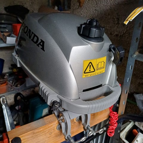 Erittäin vähän käytetty. Lyhyt riki, syksyllä vaihdettu tulppa + öljyt. Vm -24.Mukaan löytyy potkuri isommalla nousulla. Ohjekirja, tulppa-avain sekä sekä käynnistimen varanaru (tullut uuten koneen mukana) löytyy kauppaan.