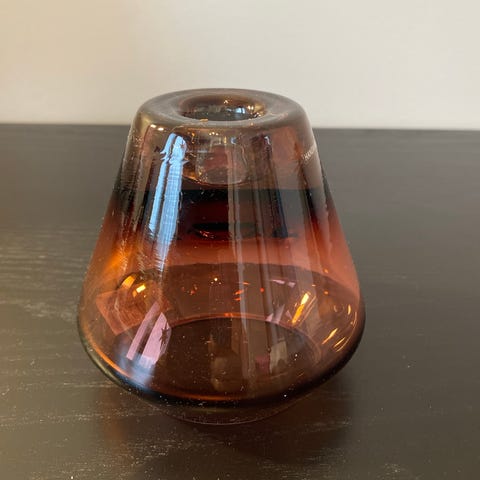 Pentikin käsintehty lasinen kynttilänjalka. Koko 10x9 cm. Kerran käytetty ainoastaan. Vain nouto.