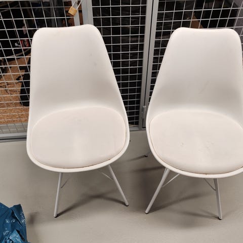 Myydään Veke keittiön tuolit 4kpl valkoiset. Jämäkät istua, muuta moitetta ei ole, kuin istuinosien nahkaosat ottaneet väriä/tummumaa, toisessa tuolissa enemmän kuin toisessa. Metalliset, valkoiset jalat.