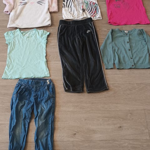 Sisältää t-paitoja, mekkoja ja hameita eri väreissä ja eri materiaaleista. Hyvä käytetty kunto. Pesty hajusteettomalla pesuaineella.
