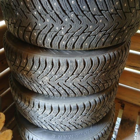 Nokia Nordman 8 nastarenkaat peltivanteilla. Ollut Opel Astra G:n alla. Renkaissa paistoaika 1122.
