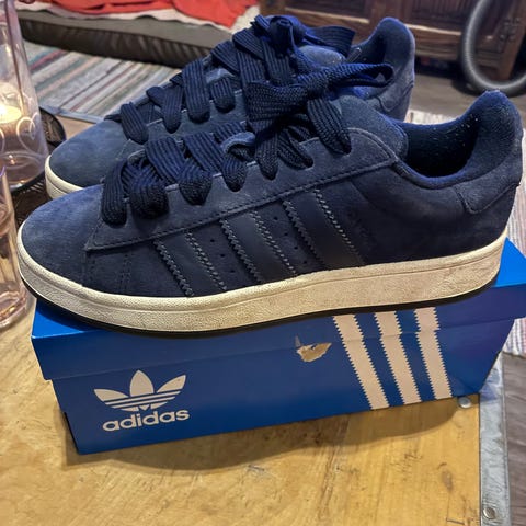 Adidas tennarit, koko 42. Väriltään tummansiniset. Kuvat näyttävät kengän ulkopinnan, sisäosan ja pohjien kunnon. Vaatii hieman kunnostusta ja mielummin uudet narut ja sisäpohjalliset. Kuitenkin hyvät kävellä ja olleet käytössä alle vuoden.