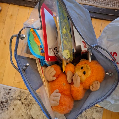Annetaan lasten leluja, musiikkia, sekalaista tavaraa, toimiva sauvasekoitin ja korjausta vaativa kattolamppu