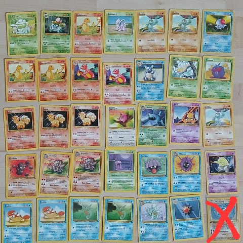 Myydään vintage Pokemon Topps-irtokortteja. Kunnot vaihtelevia, pääasiassa GD/LP/PL. Huonokuntoisia on muutama, niissä selkeästi taitoksia tai paljon reunojen kulumaa.