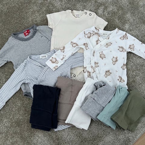 Tässä vaatepaketti koossa 62 seuraavalle käyttäjälle! Meillä ei ole lemmikkejä eikä tupakoida. Pakettiin kuuluu seuraavat: