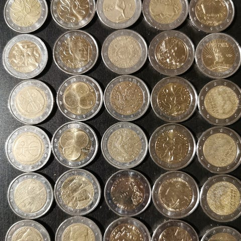 Euro 2 € juhlarahat, huonokuntoiset otin pois. Onko jollain hyvä tarjous koko läjästä. Siinä joku 150 kpl. Vain nouto tai toimitan Hyvinkää-Helsinki välille korvausta vastaan.