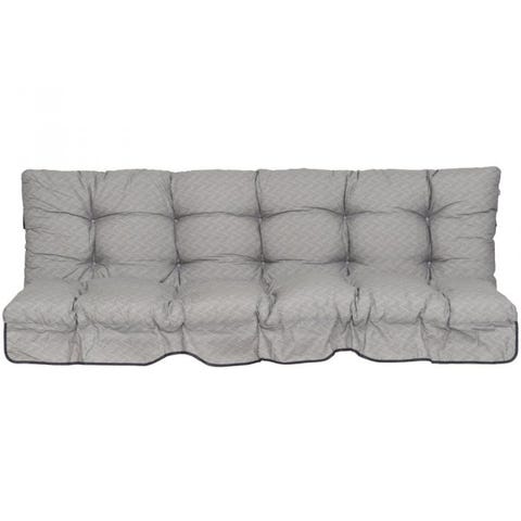 Kaksiosainen pehmustesarja 8/10 cm rouhetäytteellä ja kiinnitysnaruilla. Yhden pehmusteen koko 175 x 54 cm. Soveltuu kolmenistuttaviin keinuihin, joissa istuinleveys on 165-170 cm. Istuinosan pehmusteessa klassinen reunahelma.
