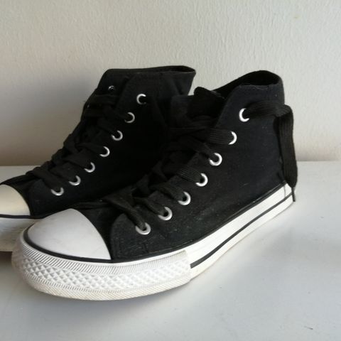 House tennarit, koko 37. Väri musta. Nauhakiinnitys ja kumipohja. Materiaali tekstiiliä päällisosassa ja kumia pohjassa. Vähänkäytetyt, erittäin siisti kunto. Hinta 2 €, nouto Vaasa keskusta, ei postitusta.