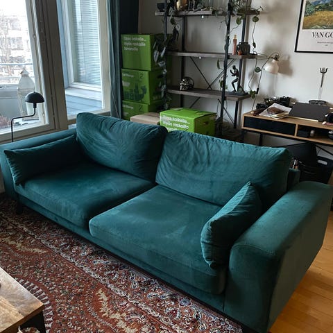 Tummanvihreä, samettinen Sits New York sohva.