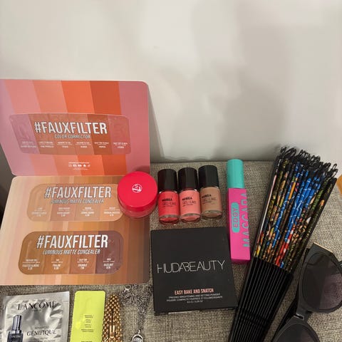 Sekalainen kosmetiikkapakkaus, joka sisältää erilaisia ihonhoito- ja meikkituotteita 40 kpl. Kokoelmassa on muun muassa Sisley, Sensai, Guerlain, Body Shop, Loreal ja Lumene -tuotteita. kasvojen puhdistus- ja hoitotuotteita, aurinkosuojavoide, hiustenhoitotuote, kasvonaamioita, huulituotteita, ripsiväri, kynsilakka sekä luomivärejä ja muita meikkituotteita. Mukana on useita eri merkkejä ja pakkauksia sekä täysikokoisina että pienempinä kokeilu- tai matkakokoina. Sopii esimerkiksi meikkipussin täydentämiseen tai erilaisten tuotteiden kokeilemiseen. Tarkemmat määrät ja sisällöt ilmenevät kuvista. Suuri osa on käytettyä, nämä sopivat kun haluat kokeilla uutta.