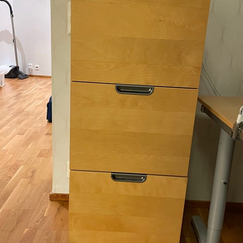 Ikean kulmakaappi. Vasemmassa alanurkassa jonkunlainen rispaantuma.