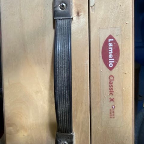 Virutex lamellijyrsin puun työstöön. Sähkökäyttöinen kone, jossa etulevy ja ohjain tarkkaan urien jyrsintään lamelleja varten. Sopii esimerkiksi huonekalu- ja kalusterakentamiseen sekä liitosurien tekemiseen puulevyihin. Runko sininen, etuosa metallia. Johto mukana kiinteästi laitteessa.