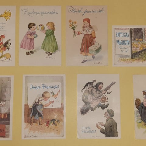 Jenny Nyströmin kuvittamia pääsiäiskortteja