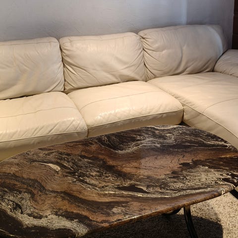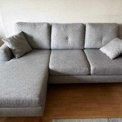 Siisti ja ehjä sohva. Divaaniosassa istuessa kuuluu äännähdys.