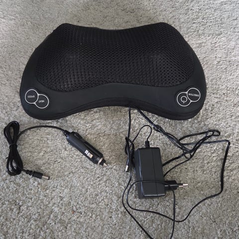 Lidlistä hommattu hierova niskatyyny. Toimii kahdella AA-paristolla