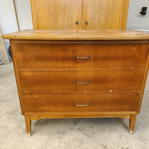Myydään kuvan mukaiset 50 luvun lipasto ja peili. Yhteishinta 100€.