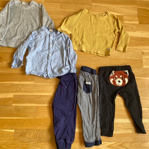 H&M ja muita merkkejä lasten vaatesetti, koko 86, unisex. Kirjava kokonaisuus, jossa useita erilaisia vaatteita arki- ja vapaa-ajan käyttöön. Setissä on muun muassa lyhythihaisia yläosia ja useita shortseja eri väreissä. Vaatteet sopivat noin 1,5-vuotiaalle lapselle mitoituksesta riippuen. Materiaalit pääosin joustavaa ja pehmeää puuvillaa tai puuvillasekoitetta, vyötäröissä kuminauha mukavuuden vuoksi. Vaatteet soveltuvat käytettäväksi sisä- ja ulkoleikeissä lämpimällä säällä. Huomioithan, että yhdessä shortsimallissa on eri merkki (Mayoral) ja hieman suurempi koko (92 cm) mutta meillä meni samaan aikaan.