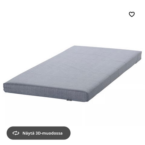Vaahtomuovipatja, kiinteä/vaaleansininen, 90x200 cm. Käytetty alle 10 krt, patja ollut hyvin suojattu, kuin uudenveroinen. Uutena 49,90 euroa.