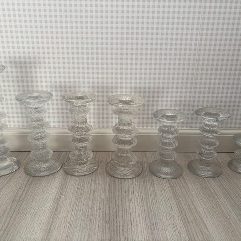 Iittalan 4 -solmuiset kynttilänjalat. Hyvässä kunnossa, i -tarrat paikoillaan. Ei signeerauksia.