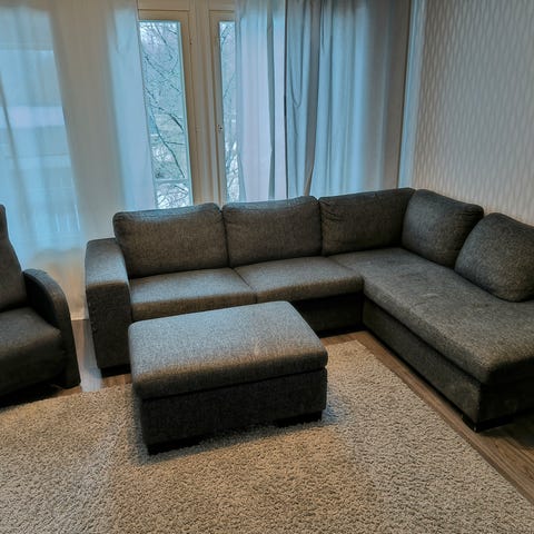 Ihan ok kuntoiset sohva ja 2 nojatuolia. Ruskeasävyistä plyysiä. Vain nouto.