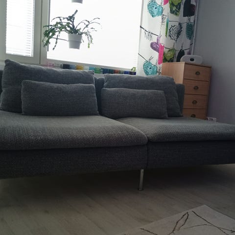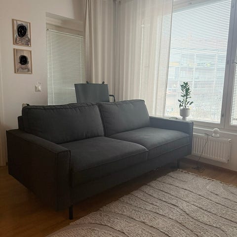 Kaksi vuotta käytössä ollut jättebö sohva.
