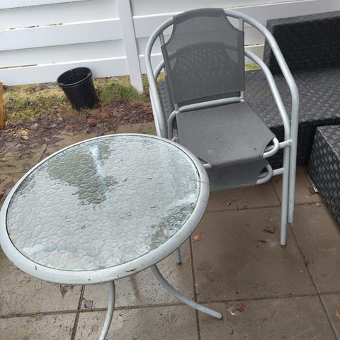Lasinen pyöreä parvekepöytä, jossa on metallirunko ja -jalat. Pöydän kansi on läpikuultavaa, kuvioitua lasia. Sopii käytettäväksi parvekkeella, terassilla tai pihalla sivupöytänä tai pienenä ruokapöytänä yhdelle tai kahdelle hengelle.