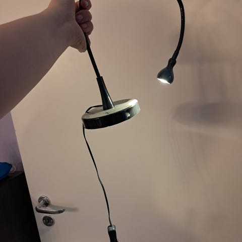 Avattu paketti, mutta valaisinta ei kertaakaan ole käytetty.