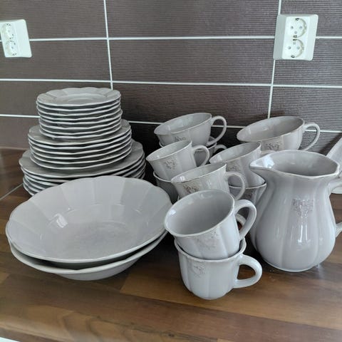 Rörstrand Victoria astiasto. Valkoinen posliininen astiasto, jossa on hillitty koristekuvio reunoilla. Kokonaisuuteen kuuluu useita eri kokoisia lautasia, kulhoja, tarjoiluastioita, kuppi–alustassi -pareja sekä kerrostarjotin. Astiat soveltuvat arki- ja juhlakäyttöön kattaukseen ja tarjoiluun.