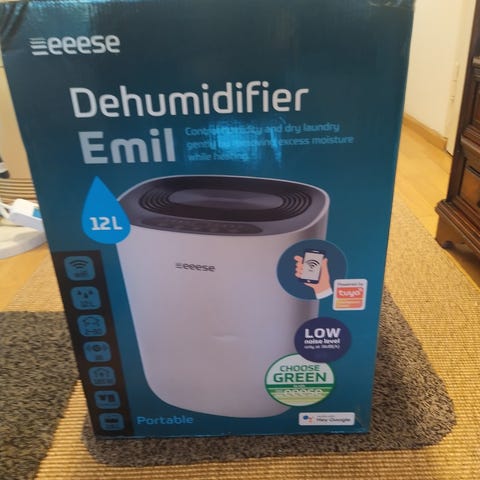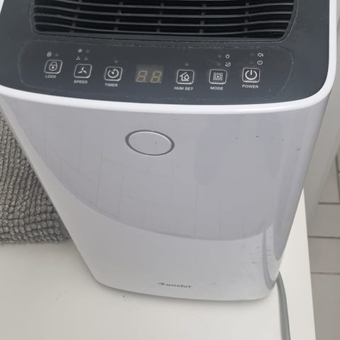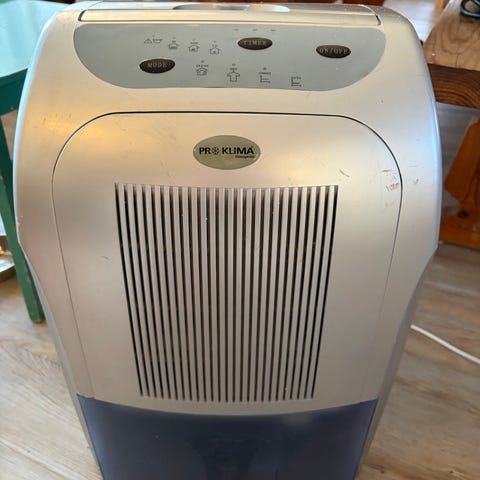 Reilut kymmenen vuotta sitten hankittu ilmankuivain. Ollut lämpimässä kylpyhuoneessa vähentämässä lapsiperheen suihkujen, pyykkien jne. aiheuttamaa kosteutta. Oli käytössä muutaman vuoden ajan. Käyttö oli satunnaista, koska lattialämmitys ja ilmanvaihto kuitenkin poisti riittävästi kosteutta. Viimeiset 7-8 vuotta varastossa.