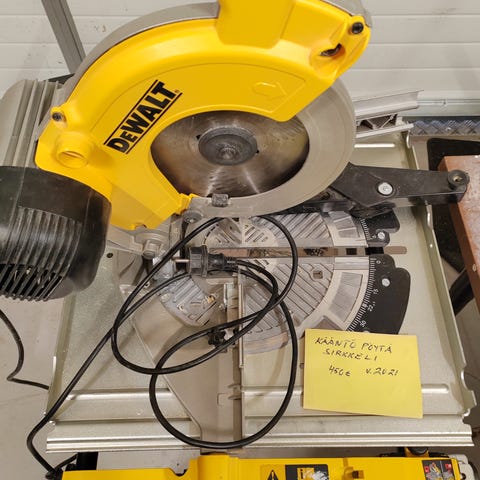 DeWalt dws777-qs 1800w 216mm katkaisu ja jiirisaha,pöydän kiinnityspalat mukaan,pöytä myyty,terä uusittu viimevuonna rempan yhteydessä,myydään pois tarpeettomana