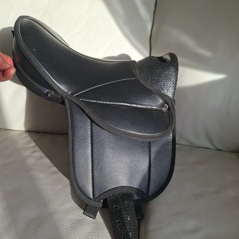 Myydään leikkeihin tai talutusratsastukseen pikkuponin söpö satula. En pidä satulan jalustinhihnojen kiinnityksiä soveltuvina tavoitteellisempaan menoon. Siivissä pintavaurioita. Jalustinhihnat saa satulan mukaan. Postituskulut vastaanottajalle.