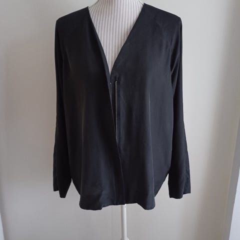 COS pusero naisille, koko M. Väri viininpunainen/ruskea. Materiaalina sekoite, jossa on silkkiä (54%) ja puuvillaa (46%). Puserossa on pitkät hihat ja väljä malli, jossa on V-pääntie ja kevyesti laskeutuva kangas. Sopii arki- ja toimistokäyttöön sekä yhdisteltäväksi erilaisten alaosien kanssa.