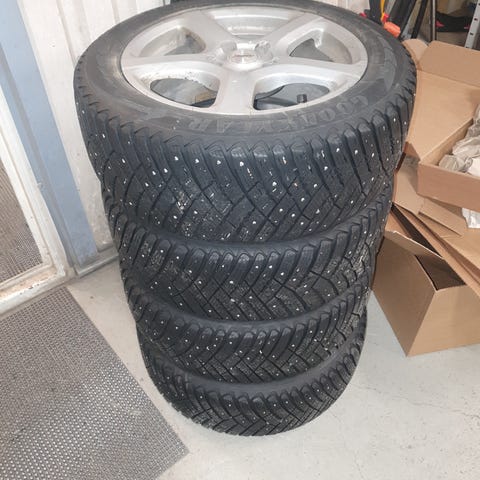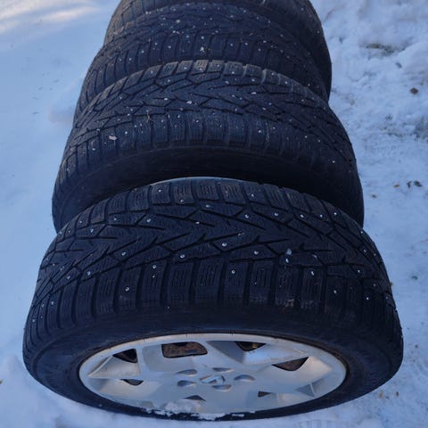 Myydään Corollassa käytössä olleet nypityt nastarenkaat fiksuilla peltovanteilla.
