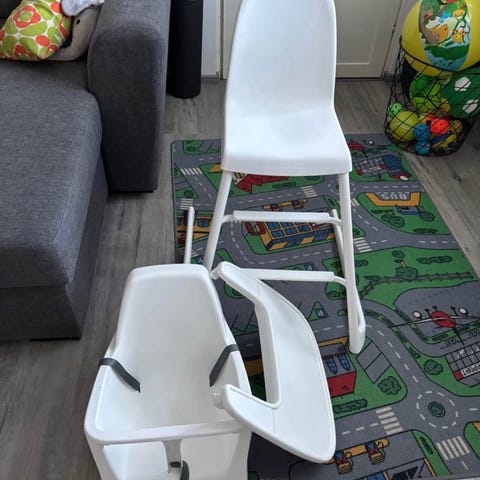 Twistshake syöttötuoli ja pehmuste. Tuoli ostettu käytettynä ja pehmuste on uusi. Kerran kokeiltu näitä ja todettu ettei sovi meidän pitkäselkäiselle lapselle. Tuolissa kulumaa edellisen omistajan jäljiltä.