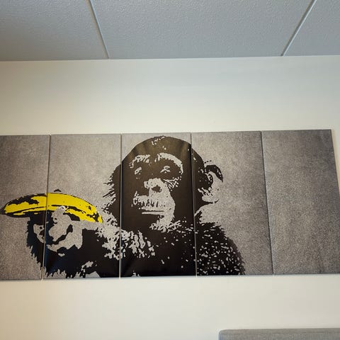 Myydään pari vuotta seinällä ollut Banksyn 5-osainen taulu. Muuton takia ei tälle uudesta asunnosta paikkaa lötynyt joten joutaa uuteen kotiin.