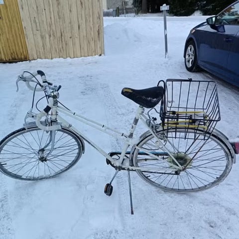 Korjattavaksi, ketjut ei pysy päällä jos polkee taaksepäin. Muuten ehjä ja kunnossa. Hyvät renkaat.