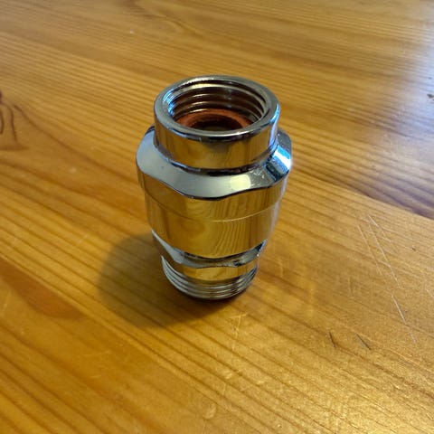 Kromattu metallinen putkiliitin.
